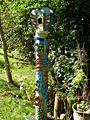 This totem was based on two gardens that I am familiar with, which have streams running through them. Complete with fish and plants.